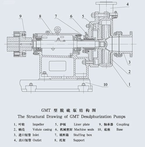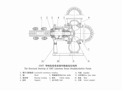 脫硫泵結(jié)構(gòu)為單級(jí)單吸托架式(懸臂式)離心泵。