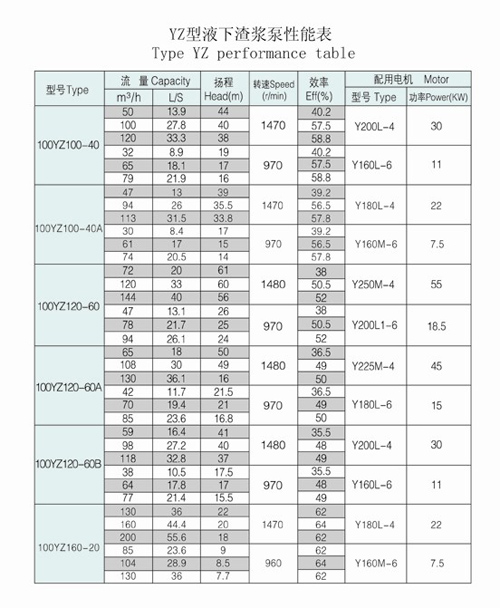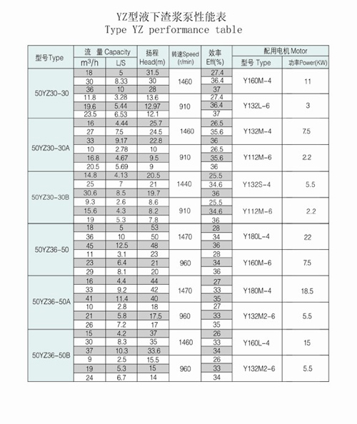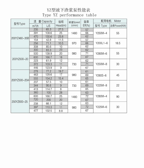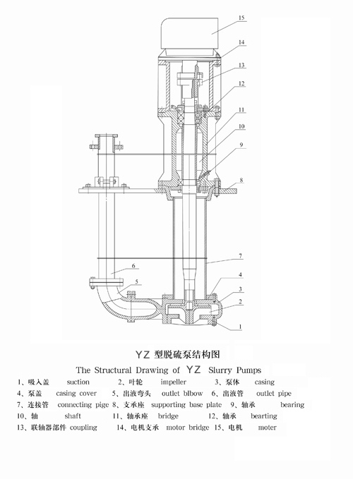 YZ型液下式渣漿泵是立式單級(jí)單吸懸臂式離心泵結(jié)構(gòu)。泵體是淹沒(méi)于所輸送的液體內(nèi),因此無(wú)需注水啟動(dòng)并解決了吸入問(wèn)題。液下部分無(wú)密封無(wú)軸承,克服老式液下泵密封,軸承使用壽命短、維護(hù)工作量大的缺點(diǎn)。葉輪為半開(kāi)式葉輪,在葉輪吸入邊延伸處設(shè)有攪拌葉片,工作中回流攪拌、機(jī)械破碎、防止堵塞,。葉輪前后蓋板設(shè)有付葉片減少泄漏、平衡軸向力,提高泵的使用壽命和運(yùn)行可靠性。泵進(jìn)口均為浸入液下,出口為切向垂直向上,從傳動(dòng)端看泵為順時(shí)針旋轉(zhuǎn)。軸承體部件采用脂潤(rùn)滑,加油量為軸承室空間容積的1/2-2/3范圍內(nèi),軸承安裝在封閉的軸承室內(nèi),軸承室外有油封密封,以防止灰塵進(jìn)入軸承室,延長(zhǎng)了軸承的壽命。